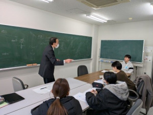 今年度も、講師として教職センターの河村先生と元教職センターの森重先生のお二人をお招きして実施しました。参加者は数理科学科7名、物理・情報科学科2名の計9名でした。練習会では、まず講師の先生から模擬授業面接等の評価の視点等について説明があり、その後、一般の教育に関するテーマで授業を立案し討論するグループと数学のある単元に関する授業を立案し模擬授業を通して討論するグループの2つに分けて練習会を実施しました。最後に、講師の先生方から今回の練習会に関するご助言をいただきました。