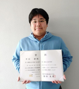 Home > トピックス > 中村謙さんが学術奨励賞を受賞 2026-03-18 中村謙さんが学術奨励賞を受賞 トピックス物情 大学院創成科学研究科自然科学系専攻数物情報系科学コース(通信理論研究室博士後期課程1年)の中村謙さんが,2026年3月11日に,学術奨励賞を受賞しました.この賞は,電子情報通信学会ソサイエティ大会において優秀な講演を行った33歳未満の若手研究者に贈られる賞です. 中村さんは2025年9月8日~12日に岡山大学にて開催された電子情報通信学会ソサイエティ大会における研究発表「単⼀削除訂正不能である量⼦単⼀挿⼊訂正符号」に対して賞を受けました.
