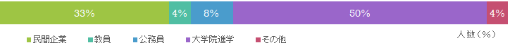 Home > 進路 > 進路(地球圏システム科学科) 進路(地球圏システム科学科) 進路決定状況 2022年度 業種別就職状況 職種別就職状況 進路詳細 就職先 進学先(大学院博士前期課程) 過去3年間の情報