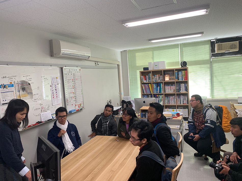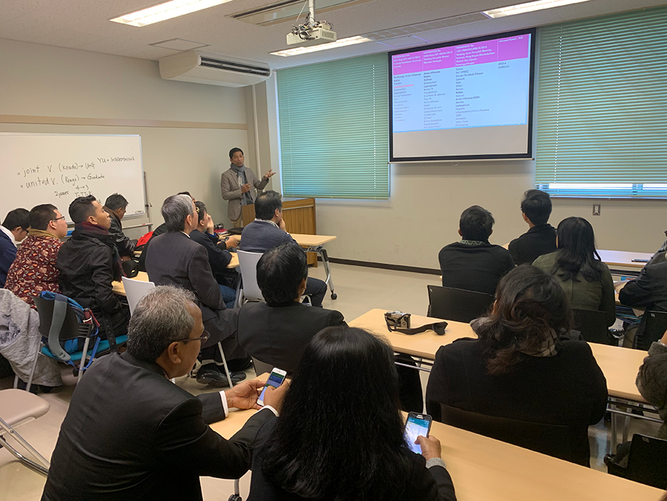 インドネシアバリ島デンパサールにある国立大学ウダヤナ大学から12月10日から14日にかけて大学間交流協定をもつ山口大学に視察団が来学し、13日(木)の午前中に共同獣医学部との交流が行われました。使節団は、Prof. Dr. Ir. I Nyoman Gde Antara副学長ら教員5名とウダヤナ大学構成学部から1名ずつ選抜された学生11名で、本学部で受け入れる留学生らによる4題の交流成果発表と活発な質疑応答に続き、先進研究が行われる獣医生化学研究室(島田緑教授)の訪問、獣医学国際教育研究センター(iCover)や先端実験動物学研究施設(木村透教授)、動物医療センター、解剖学実習棟(日下部健教授)での見学をとおして、教育・研究での2大学の連携の重要性を相互に理解する絶好の機会となりました。