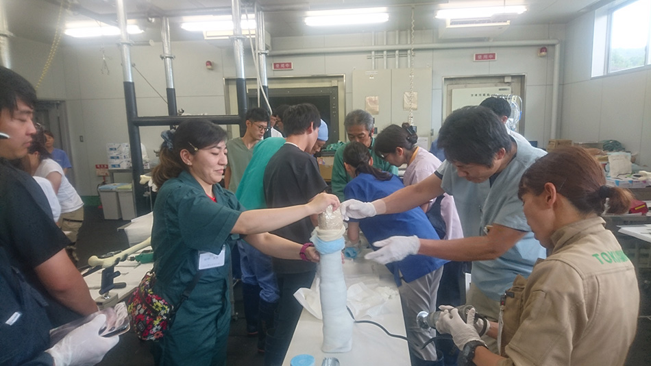 8月19日(月)~23日(金)に、共同獣医学部において、「馬救急医療実践力育成プログラム」をテーマとした集中実習を実施しました。 このプログラムは、文部科学省の「職業実践力育成プログラム(BP※)」として認定された事業であり、馬の救急医療に必要な知識や技術について、社会人の学び直しのためのリカレント教育(大学卒業後の人材育成)のため、この度、山口大学履修証明プログラムとして、大動物臨床に関わる社会人の方のために開設したものです。