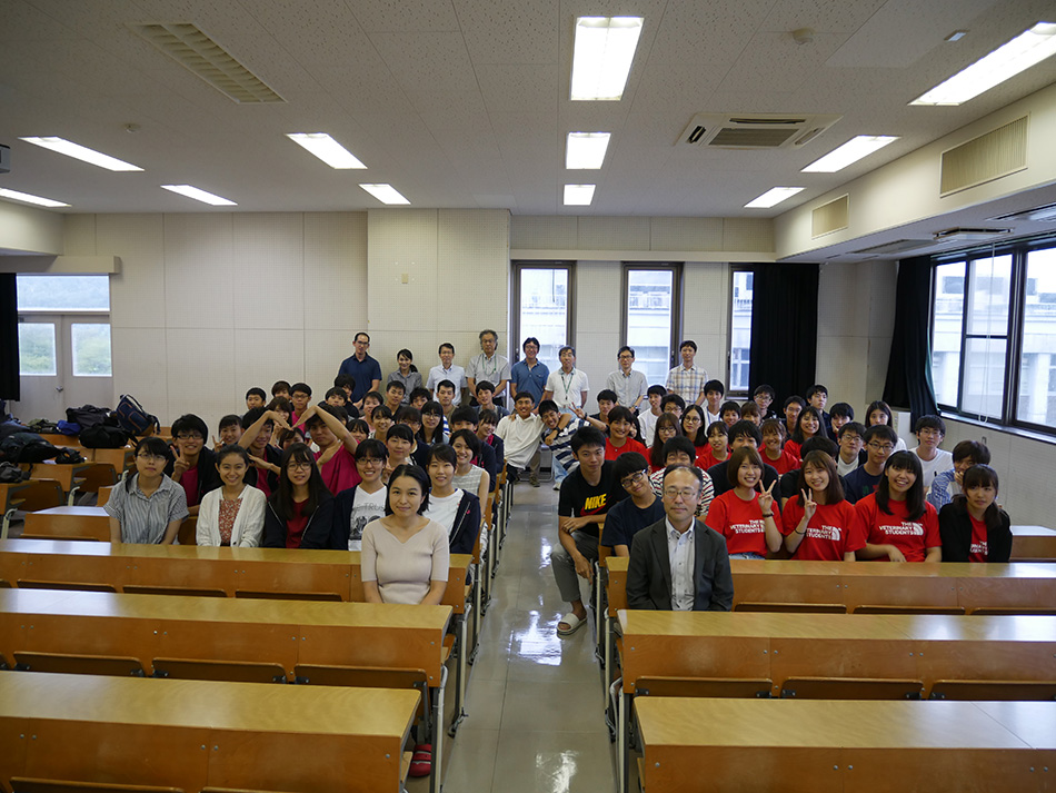 既に前の週(8/21~23)に「獣医学概論B」(於:鹿児島大学)が実施されていたこともあり、両大学の学生間の交流も進んでおり、同じ志を持った1年生同士が切磋琢磨しながら今後の修学に励んでくれることを期待します。