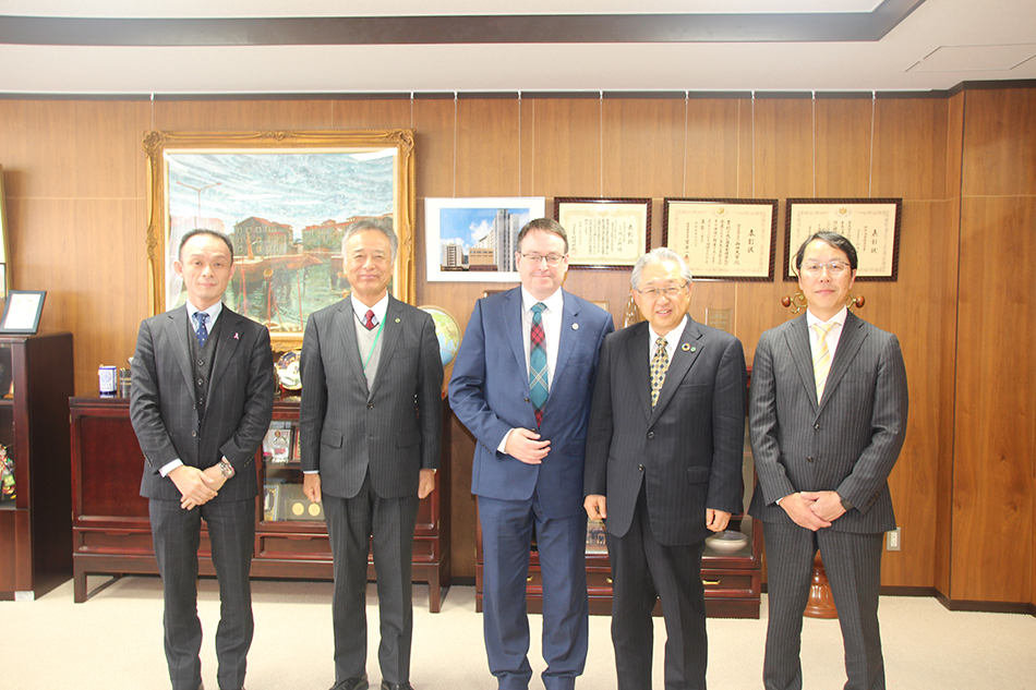 12月6日(金)に、本学の国際交流協定校である、エディンバラ大学(The University of Edinburgh)(イギリス)より、同大学の前獣医学部長であるProfessor David Argyleが来学し、岡正朗学長及び三浦房紀副学長を表敬訪問しました。