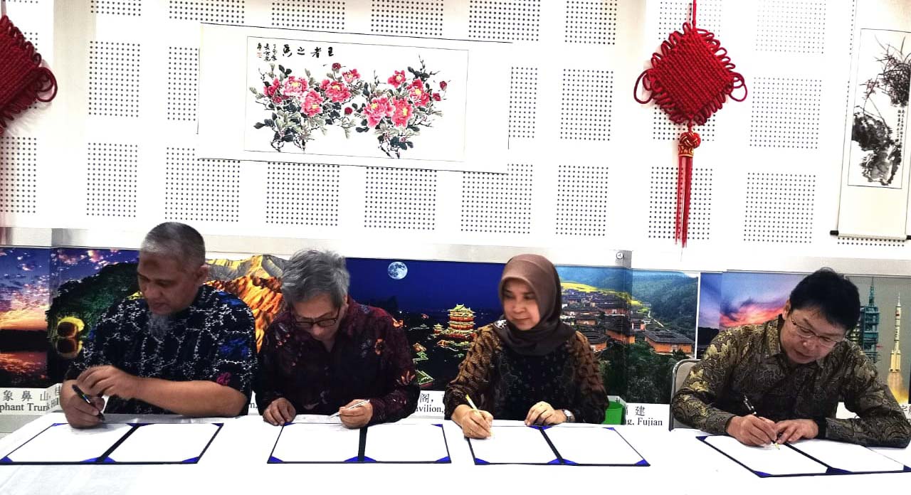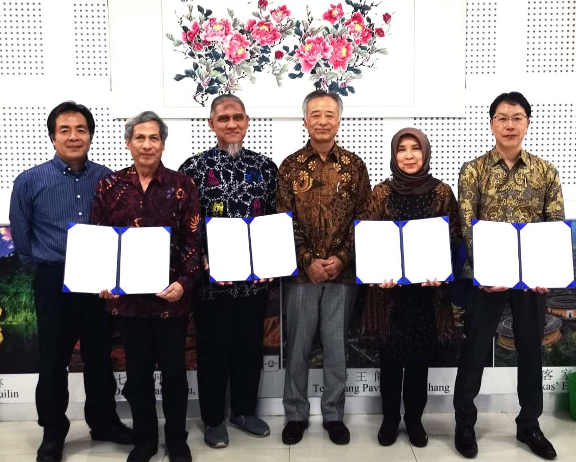 今回は,AJIVEの役割を具体化するため,定款(BYLAW)を定め,三浦房紀副学長(国際連携担当)立ち会いのもと,Executive Committeeメンバー(山口大学,ボゴール農科大学,ガジャマダ大学,アイルランガ大学)の学部長による調印を行った。