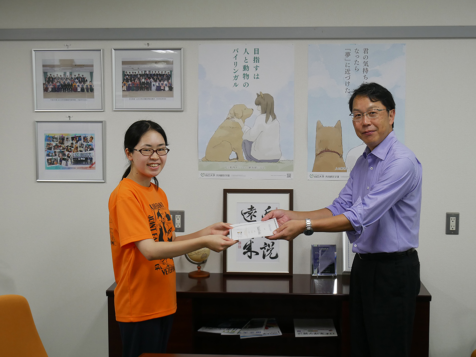 高橋さんは、英語による授業を受けるとともに、参加者や教員、研究者とディスカッションを行い、さらに、日本の獣医学教育について発表を行いました。 カンファレンス修了後、UC Davisから修了証書と発表証書が送付され、佐藤学部長が代理として高橋さんに授与されました。