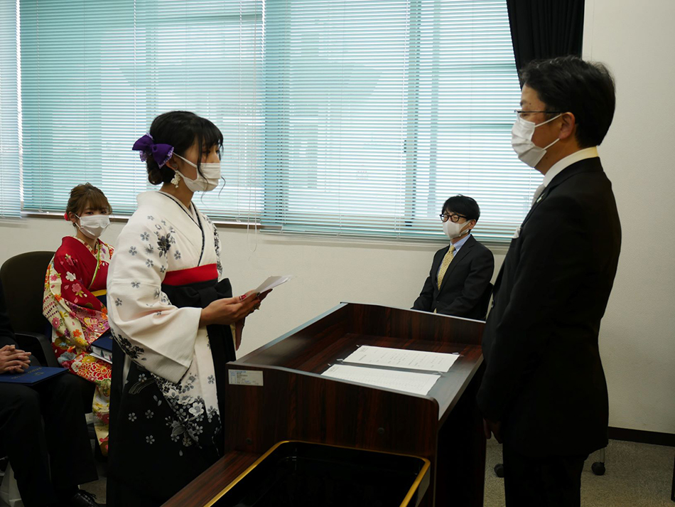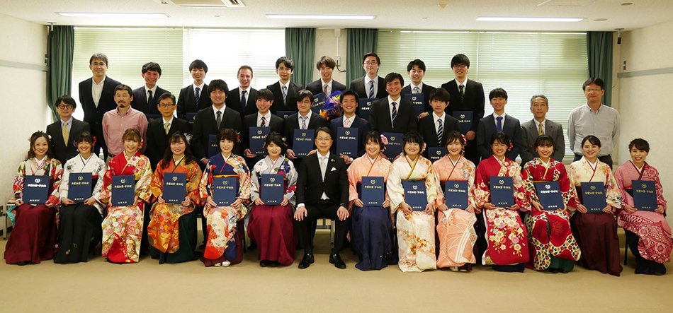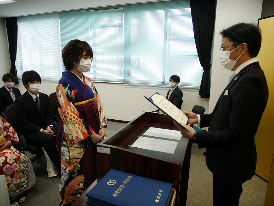 令和3年3月23日(火)に令和2年度共同獣医学部卒業生への「学位授与式」を行いました。共同獣医学部としては4期生になります。