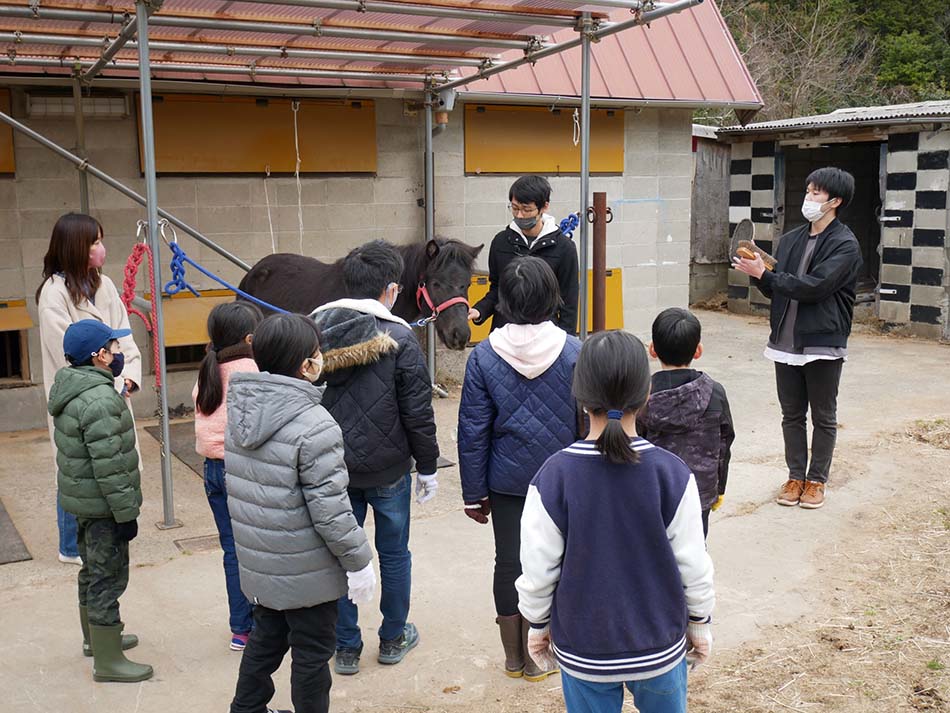 1月5日(水)に、ヤマミィ学級の児童16名が「馬活動室」馬と触れ合う「ホースセラピー教室」に参加しました。