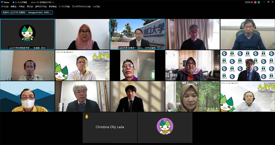 インドネシアの獣医系大学と山口大学大学院連合獣医学研究科(共同獣医学部・共同獣医学研究科)の教育・研究交流を図るため,2017年から始まった本シンポジウムも6回目となりました。当初は主催大学である山口大学においてハイブリッド(国内大学対面、インドネシア大学オンライン)で実施予定でしたが,新型コロナウイルスによる状況を鑑みて、国内大学参加者も含め完全オンラインで2022年2月11日(金)に開催しました。