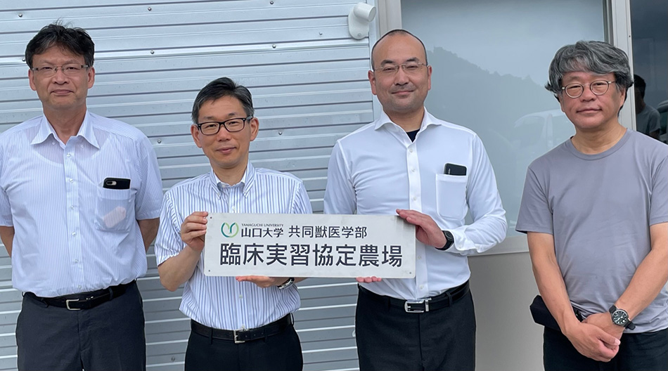 この度山口大学共同獣医学部は,同社と産業動物の教育研究における連携協力に関する覚書を締結し,「臨床実習協定農場」に指定することにより,産業動物獣医療・予防管理をはじめとする獣医学教育において,共同獣医学部の学生が,実際に手を動かして参加する「Hands-On臨床実習」の実施が可能となりました。