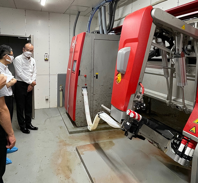 <個々の乳牛の食事量を記憶し,1台で60頭の給餌ができる最先端の自動給餌装置>