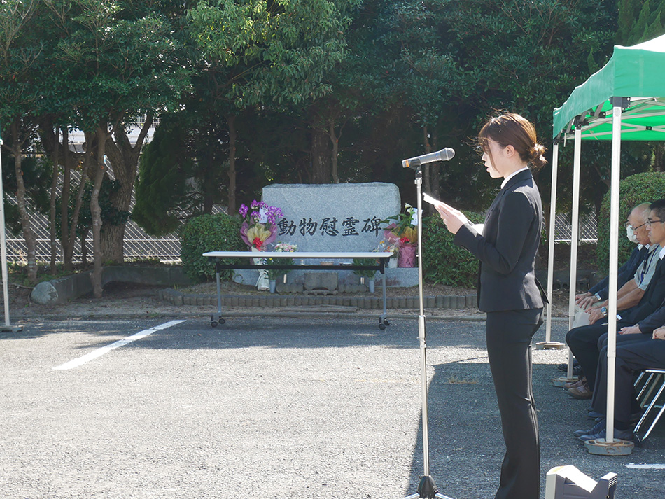 10月4日(水)午後1時30分から動物医療センター敷地内の動物慰霊碑前広場において、飼い主であった方々、教員、学生、山口県獣医師会長が参列し、動物慰霊祭が執り行われました。