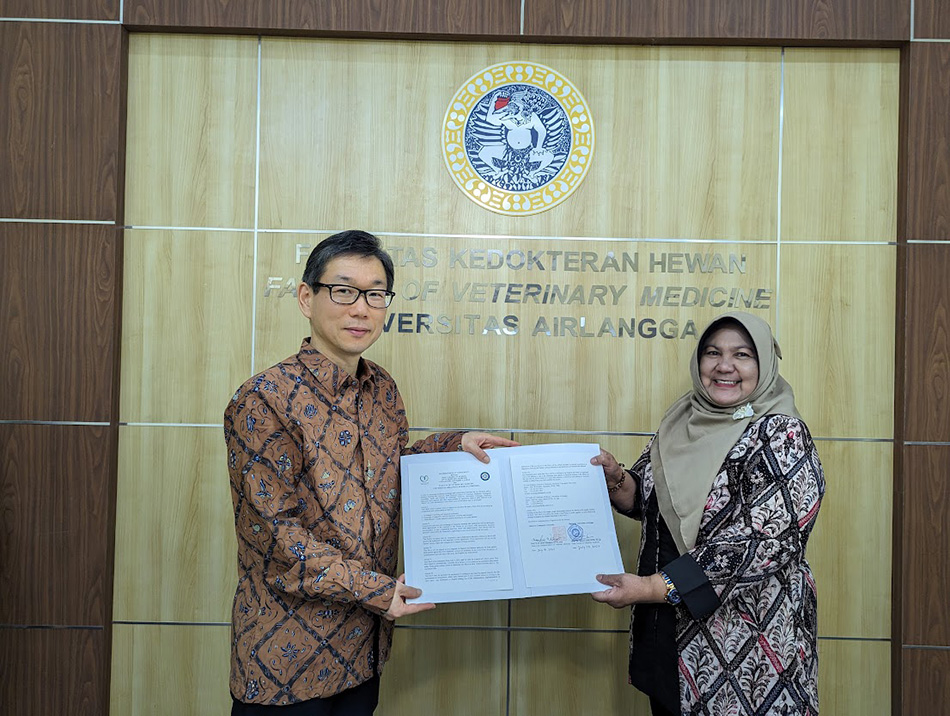 山口大学共同獣医学部・度会雅久学部長、佐藤宏教授、清水隆准教授が、2023年11月21日(火)、インドネシア・アイルランガ大学(Universitas Airlangga)を訪問し、学部間国際学術交流協定(Memorandum of Understanding)の更新を行いました。