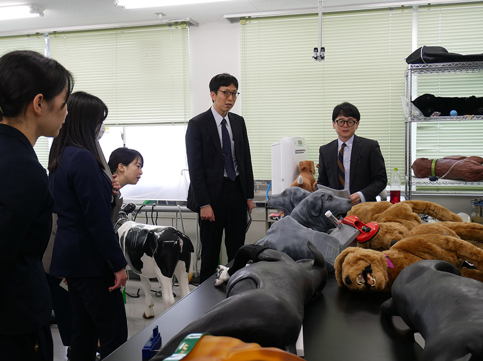 令和5年12月12日(火)に、文部科学省高等教育局専門教育課・亀田課長補佐他3名の方が来学され、本学部における獣医学教育の現状等について意見交換を行うとともに、 本学部施設を視察・見学されました。
