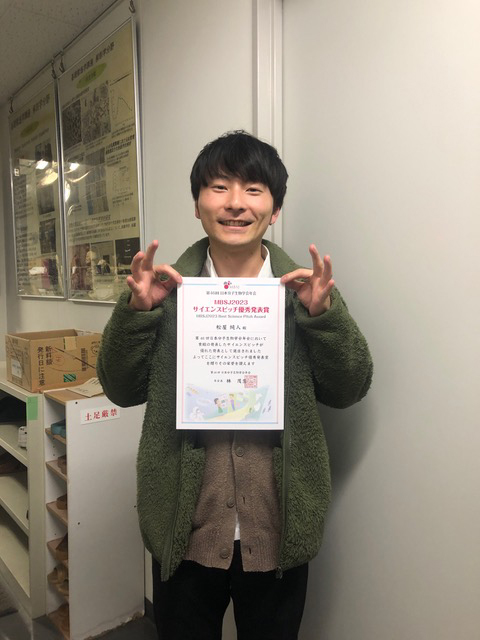 共同獣医学研究科4年の松屋純人さん(獣医発生学教室) が、2023年12月6日から8日に開催された第46回日本分子生物学会年会において、MBSJ2023サイエンスピッチ優秀発表賞を受賞しました。