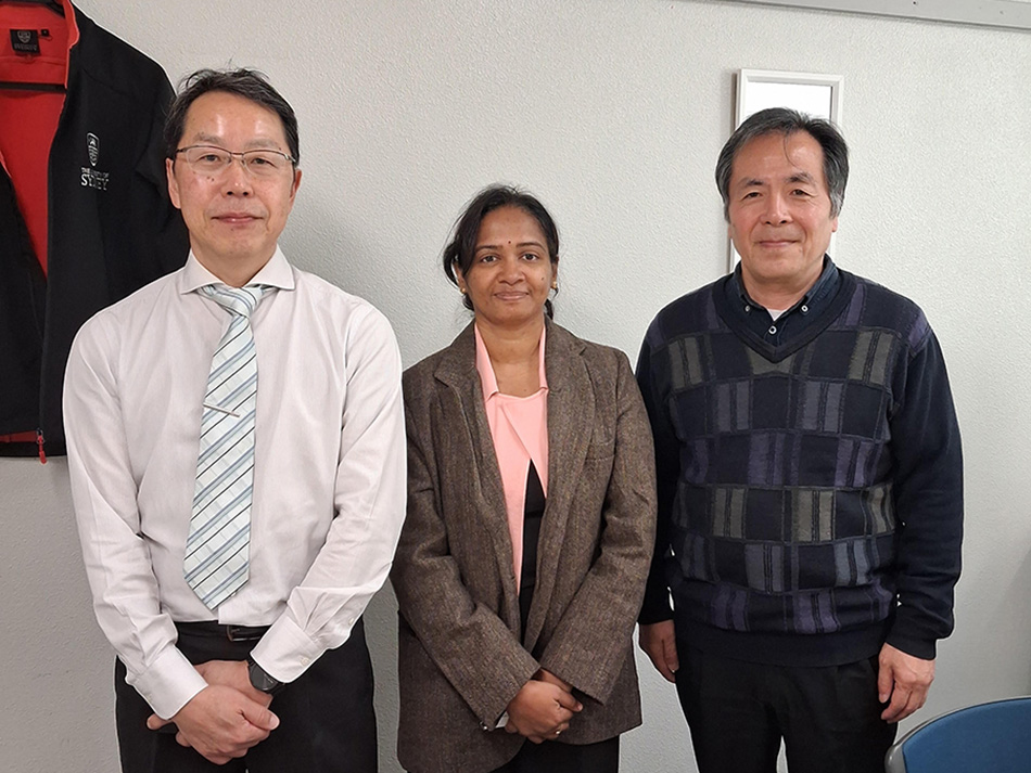 研究推進担当副学長表への敬訪問。佐藤晃一副学長、佐藤宏教授とともに。