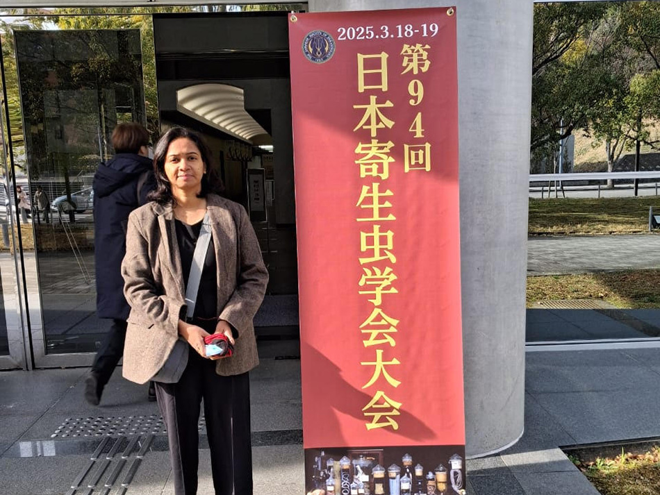 Dr. Manaswini Dehuriは産業動物のマダニ媒介寄生虫症や腸管寄生虫症の研究に取り組んでいます。来日直後の3月18〜19日に開催された第94回日本寄生虫学会(大阪大学微生物研究所)に参加し、国内最新の寄生虫学研究を見聞する機会をもちました。