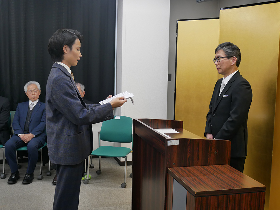 また、卒業生代表からは、「入学以来、多くの方々に支えられながら獣医学の学びを深めてきた。この山口大学で培った知識と経験を基盤に、獣医学の発展や社会への貢献に努めていきたい。」との挨拶がありました。