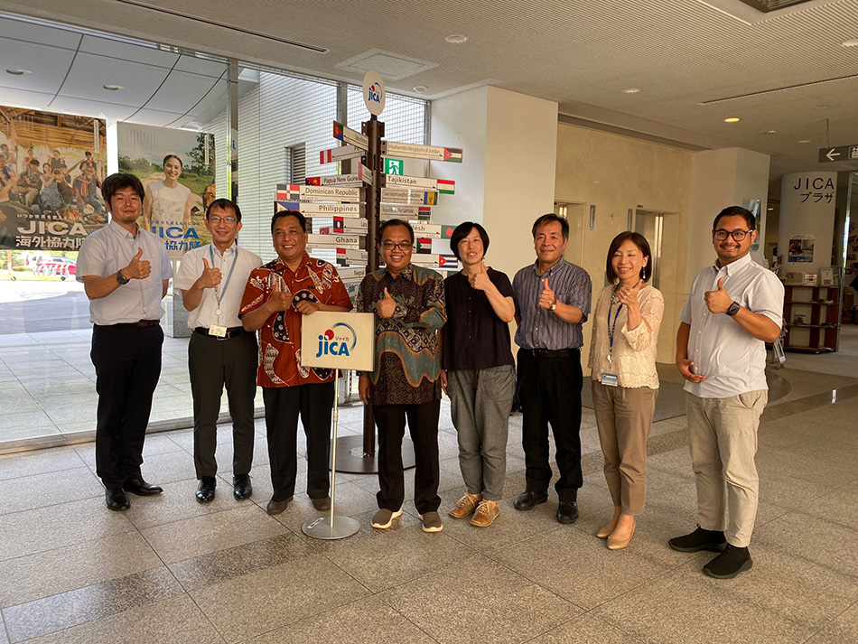 また、本学部の度会雅久学部長、谷口雅康准教授らと、2022年8月から2大学が連携して取組むJICA草の根技術協力事業『インドネシア国ジョグジャカルタにおける農業従事者の生活向上のための牛の繁殖効率改善』について意見交換が行われました(写真2)。本事業は今夏で3年目を迎えます。事業の実績と今後の展開を協議するため、事業を統括するJICA中国センターに澁谷和朗 市民参加協力課長、藤原怜子課長、藤田かおり専門員を訪問し、綿密な打合せも行われました(写真3)。