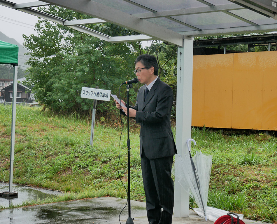 はじめに度会学部長から「私達の日頃の教育、研究、診療活動には、ここに納められている動物達の献身的な協力があったことに深く感謝し、今後も教育・研究・診療により一層励むことを誓います」との挨拶があり、続いて学生代表が慰霊の言葉を述べたあと、参列者全員による献花が行われました。その後、中市動物医療センター長の挨拶、最後に山口県獣医師会の田中会長から参列者代表としての挨拶をいただきました。