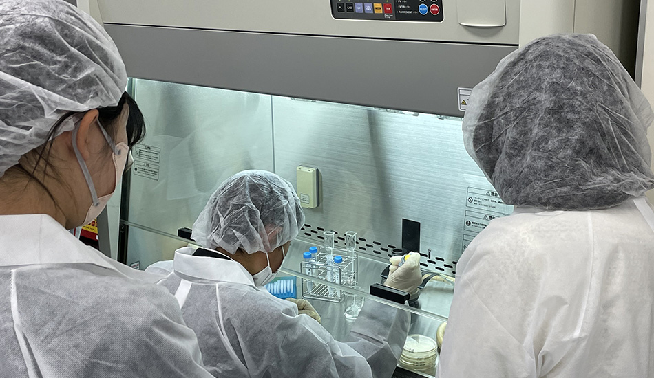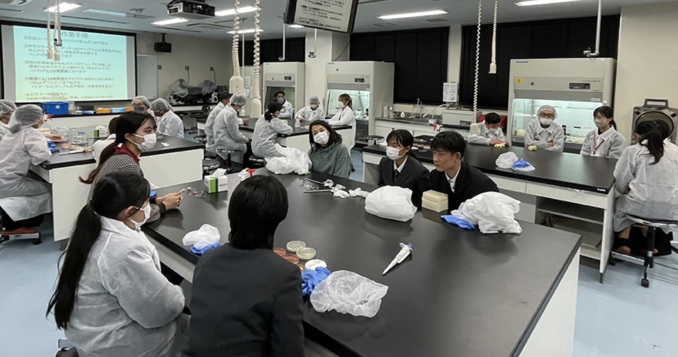 午後からは,食肉検査を行い,安全キャビネットで寒天培地に生肉とソーセージの原液を塗る作業は,貴重な経験となりました。検査結果は翌週に判明し,加熱処理がいかに重要であるかを改めて認識するものとなりました。