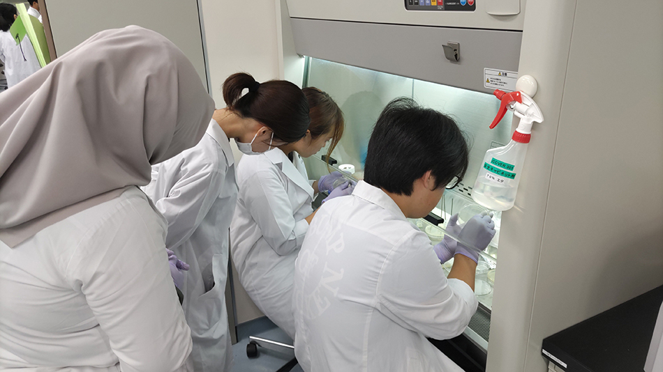 This year, the Japanese 4th grade students and students from National Chung-Hsing University (Taiwan), Jeonbuk National University(Korea),Kasetsart University (Thailand) ,and IPB University (Indonesia) were joined together. These international students joined under MEXT Inter-University Exchange Project or Yamaguchi University Short Stay (YUSS) Program. The lecture was conducted in both Japanese and English, and most training was held in mixed groups of Japanese and foreign students. The improvement in communication skills was remarkable, with Japanese students who were initially nervous to talk on the first day actively speaking to each other in English on the last day. We hope that this kind of experience will be a good opportunity for both students to broaden their perspectives.