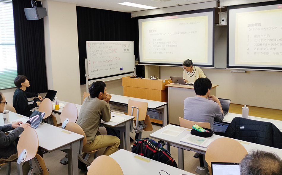 SATREPS プロジェクト「ワンヘルス・教育・官民連携による顧みられない人獣共通感染症介入の共同デザインに関する研究開発(OHEPP-SATREPS)」(代表:蒔田浩平・酪農学園大学教授)の人類生態学班の班会議が山口大学吉田キャンパス獣医学研究科棟にて開催されました。 東京大学、東京外国語大学のグループからタンザニアのマサイ族における調査が報告されました。 <班会議の様子> (写真をクリックすると拡大画像をご覧いただけます)