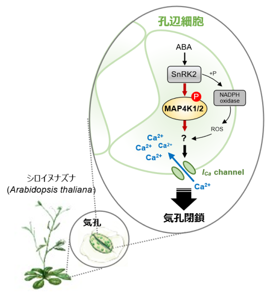 植物の乾燥防御の鍵:気孔閉鎖シグナル伝達を担う新規因子MAP4K1/2を発見 ~長年未解明であったカルシウム制御の謎に迫る~