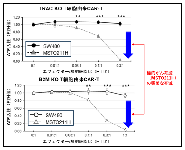 - 免疫関連遺伝子を破壊したT細胞より作製したCAR-T細胞が腫瘍細胞を殺傷できることを確認したことから、本技術は、同種移植型CAR-T細胞など次世代の細胞治療技術の基盤になる可能性があります。