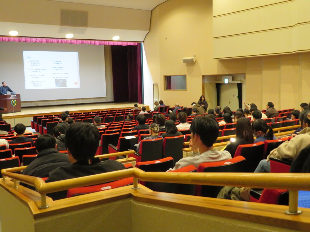 令和7年12月26日(金)山口大学大学会館において中高温微生物研究センター公募型共同研究交流会を開催いたしました。第1部では、星田センター長のあいさつに続き、令和6年度に採択された18件の共同研究から7名の共同研究者の方々に来学いただき、研究内容をご発表いただきました。また、センターの4部門から各1名ずつ研究発表がありました。学内から約160名の参加がありました。